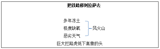 (1)建设者们面临的难题有哪些?(多年冻土、极度缺氧、恶劣天气)